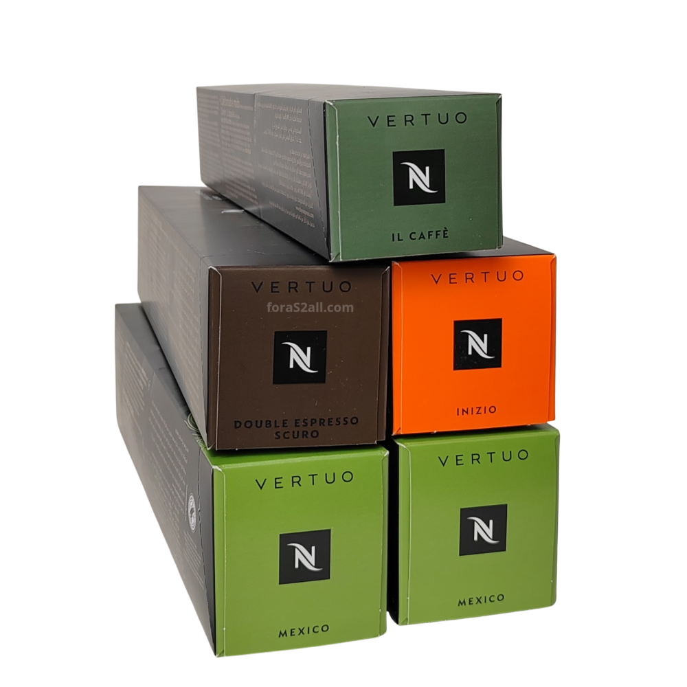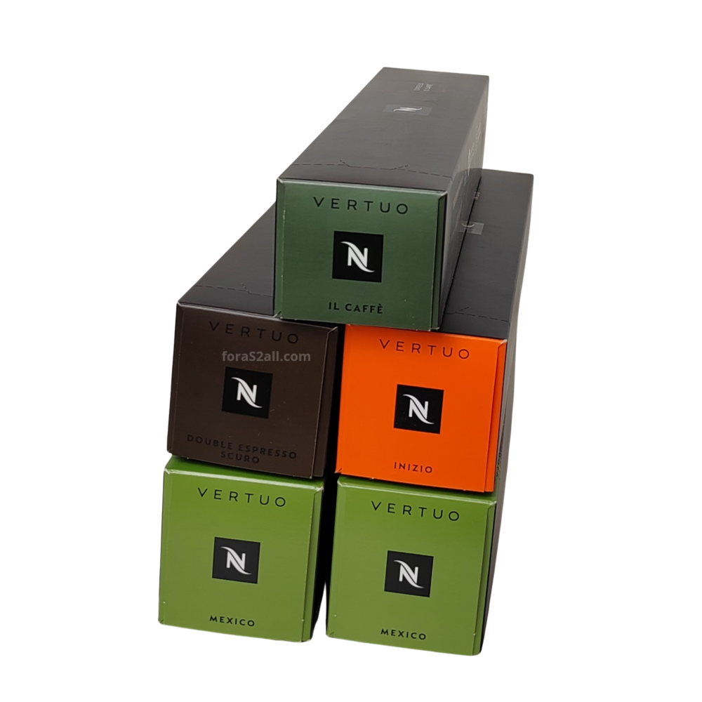 تحتوي المجموعة على 5 عبوات من كبسولات نسبريسو فيرتو، بإجمالي 50 كبسولة، لتضمن لك دائمًا تنوعًا يلبي جميع الأذواق.